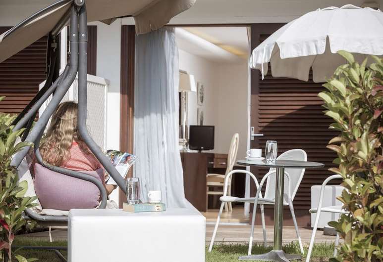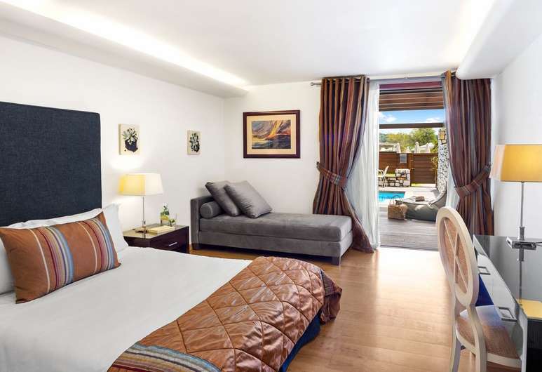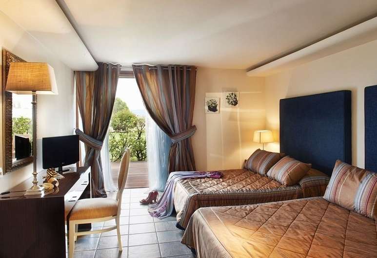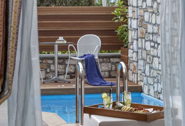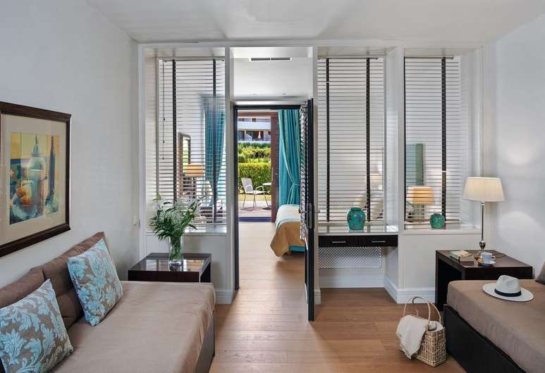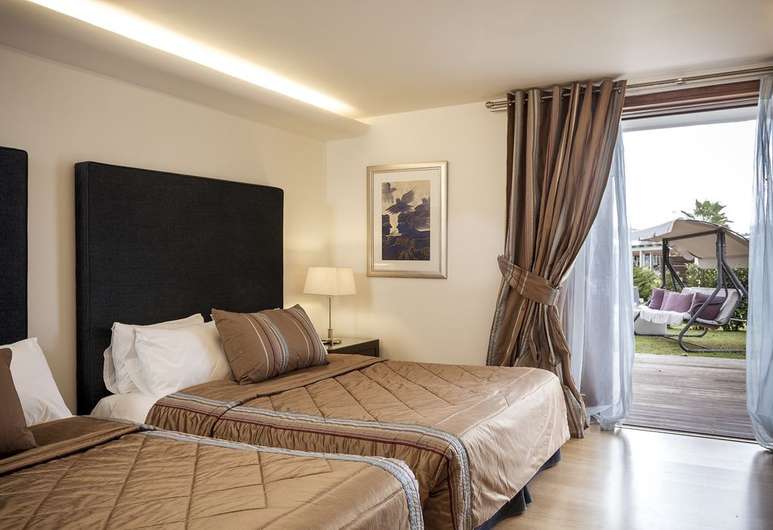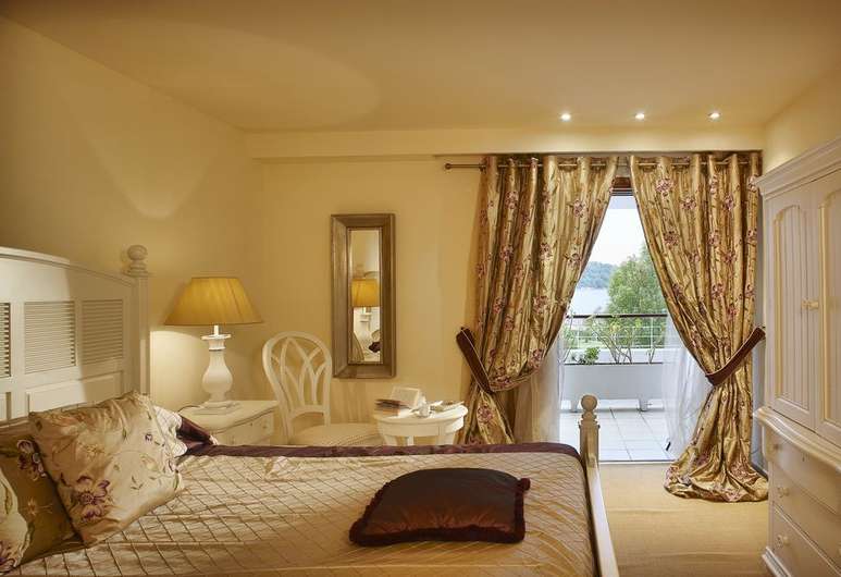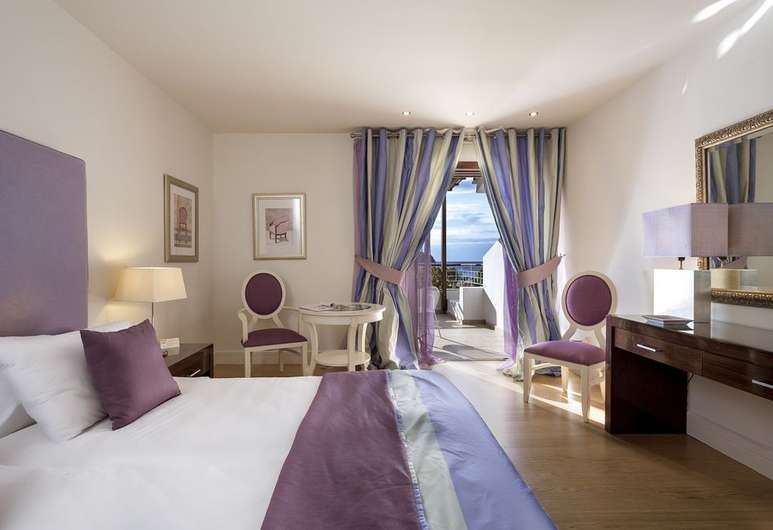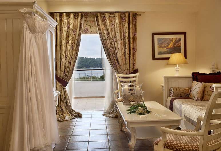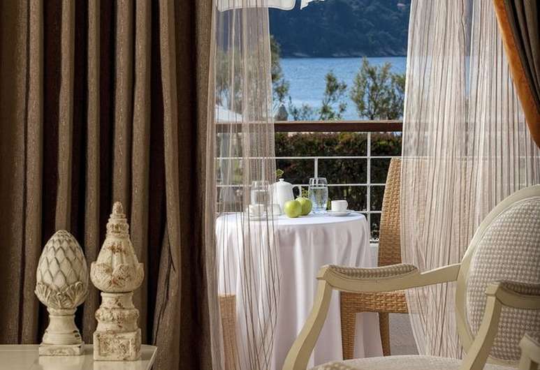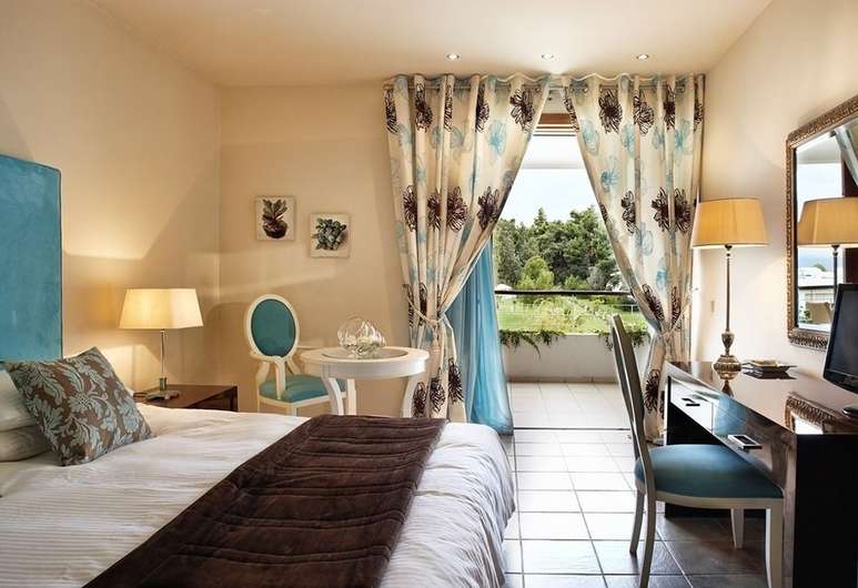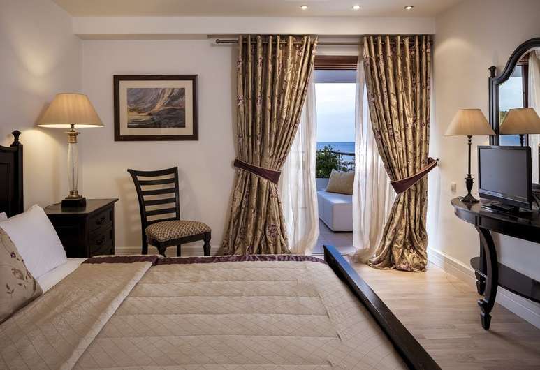 Le eleganti sistemazioni sono dotate di balcone con vista mozzafiato sul mare o sul giardino e bagno interno con set di cortesia Apivita, accappatoi, pantofole e asciugacapelli. Il servizio in camera è disponibile 24 ore su 24.