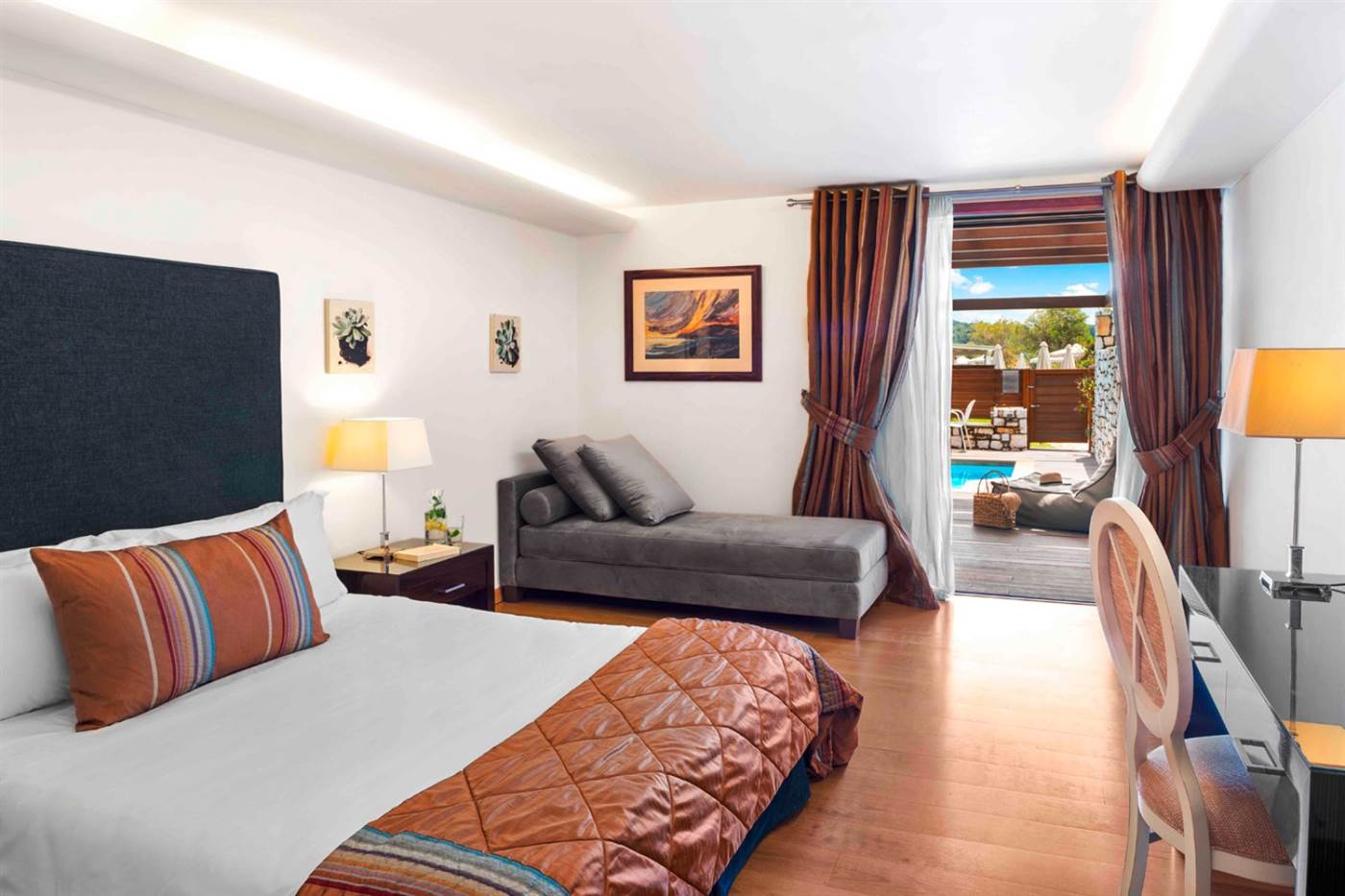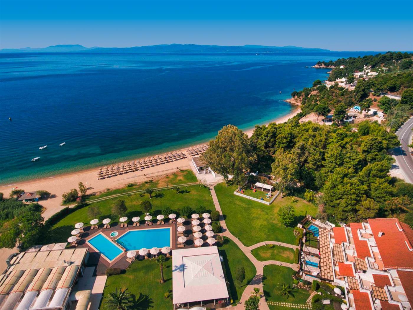 L'hotel di categoria 5 stelle è posizionato a 7 kilometri dal porto di Skiathos. Circondato da lussureggianti e ben curati giardini e l'accesso diretto alla bellissima spiaggia Agia Paraskevi, la struttura offre camere eleganti con vista mozzafiato sul mare oppure sul giardino. Tutte le sistemazioni comprendono bagno privato con set di cortesia, tv , aria condizionata e connessione wi-fi gratuita. Servizio in camera disponibile 24 ore su 24. L'hotel dispone inoltre di una grande piscina con vasca idromassagio, centro benessere e sala fitness. Il centro benessere offre trattamenti naturali ed una vasca con pioggia tropicale. Per i piu' piccoli il mini club e parco giochi attrezzato. Il ristorante principale serve ricchi buffet per la colazione e la cena a base di prodotti di qualita' e piatti della tradizione mediterranea. Avrete inoltre la possibilità di scelgliere tra 3 ristoranti dove ciascuno offre un tema diverso. Parcheggio gratuito.