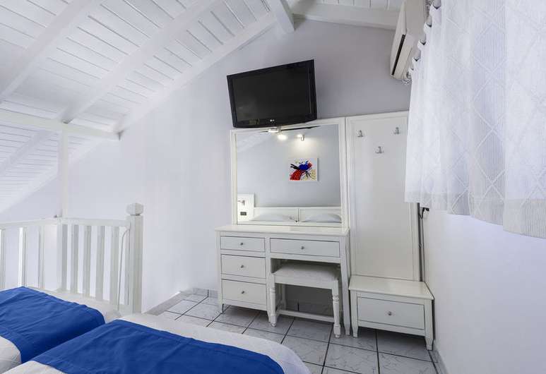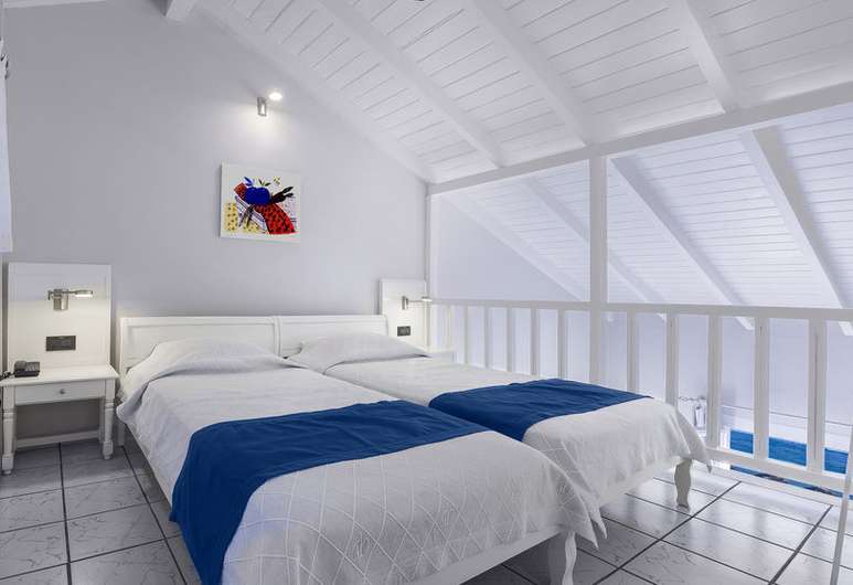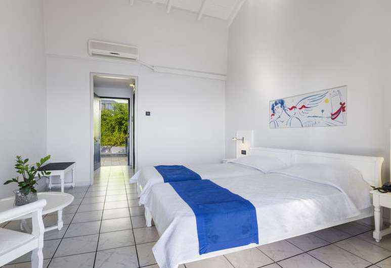 Le camere dispongono di terrazza o balcone con vista sul giardino o sul mare, TV satellitare a schermo piatto, aria condizionata, mini frigorifero e bagno completo di articoli da toeletta, accappatoi, pantofole e asciugacapelli.