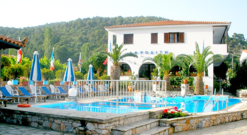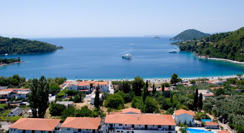 L'Afroditi presenta un parcheggio privato gratuito in loco e si trova a 1 km dalle Spiagge di Milia e Kastani, a 11 km dalla città principale e dal porto di Scopelo.