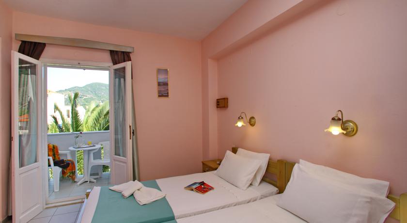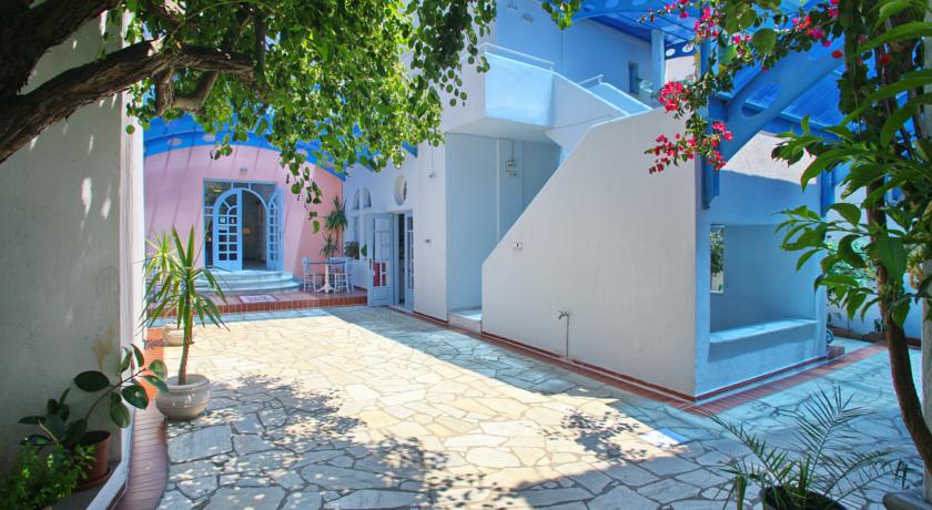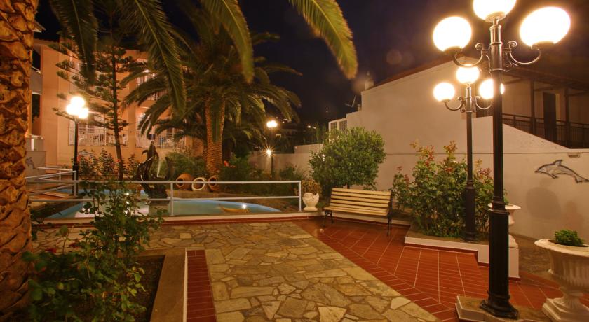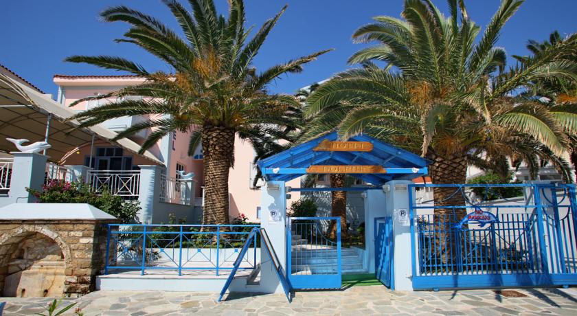 Il Dolphin Hotel sorge a 120 metri dalla spiaggia più vicina e a 4 km dalla spiaggia di Stafylos, la più famosa dell'isola.