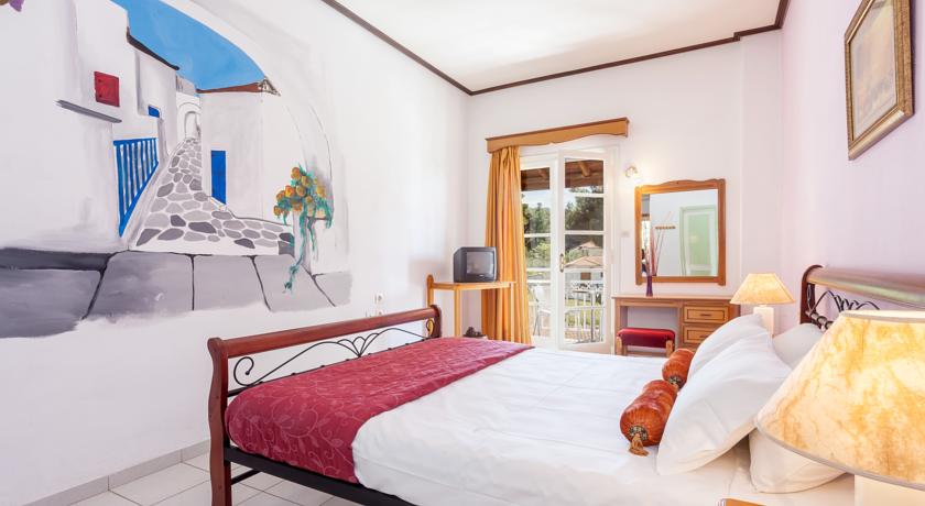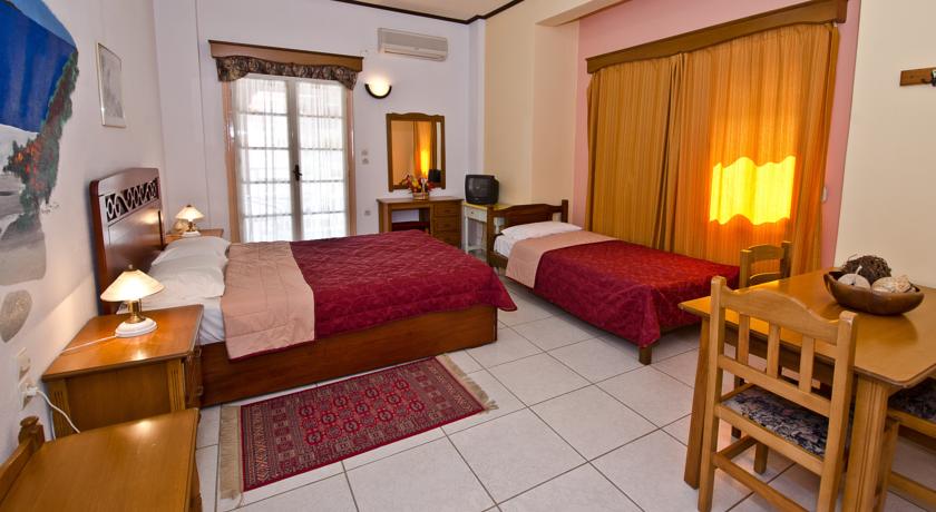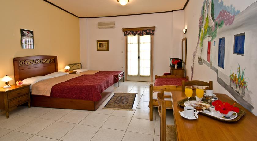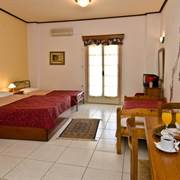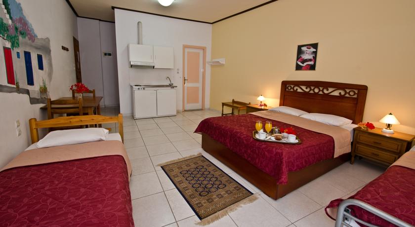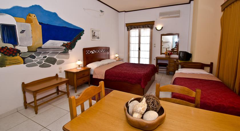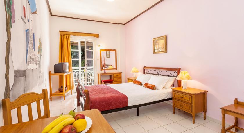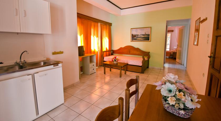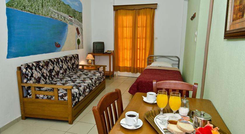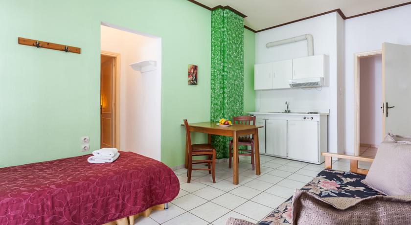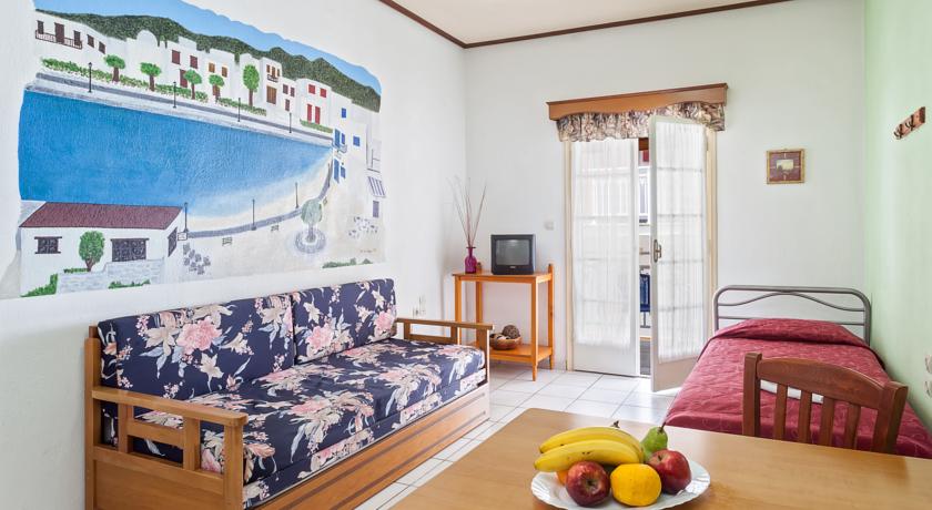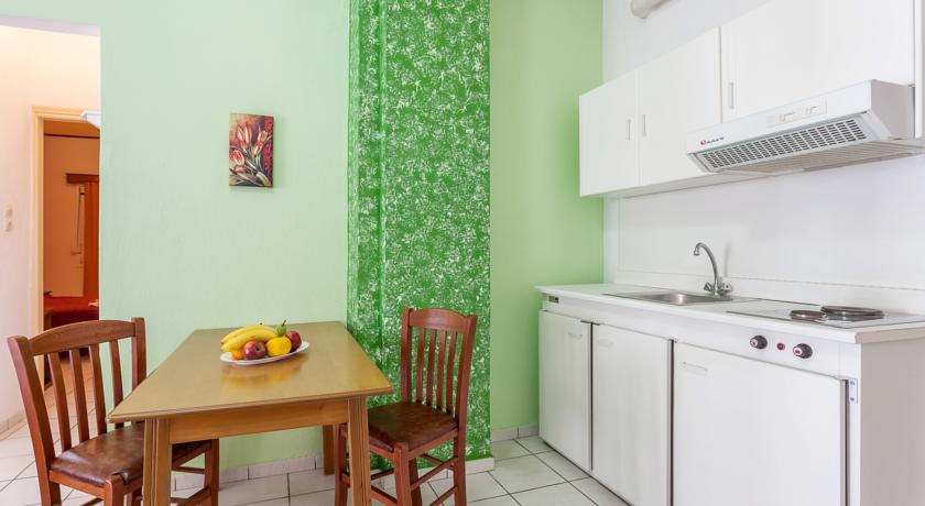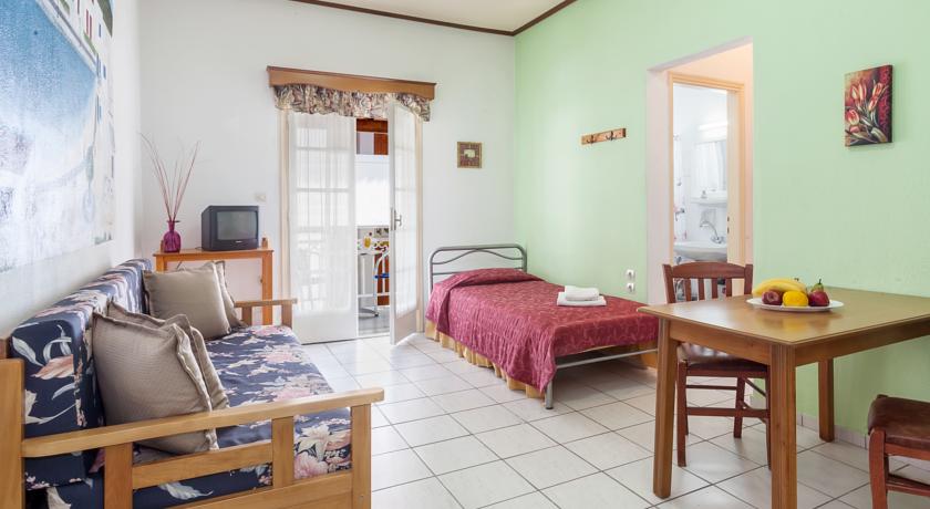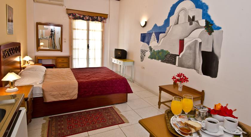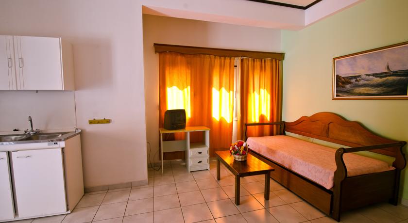 I monolocali e gli appartamenti dell'Elios dispongono di un balcone con vista sul Mar Egeo o sul giardino, di una TV satellitare, di un angolo cottura con mini frigorifero e fornelli, di un set di cortesia e, in alcuni casi, di camera da letto separata e area salotto.