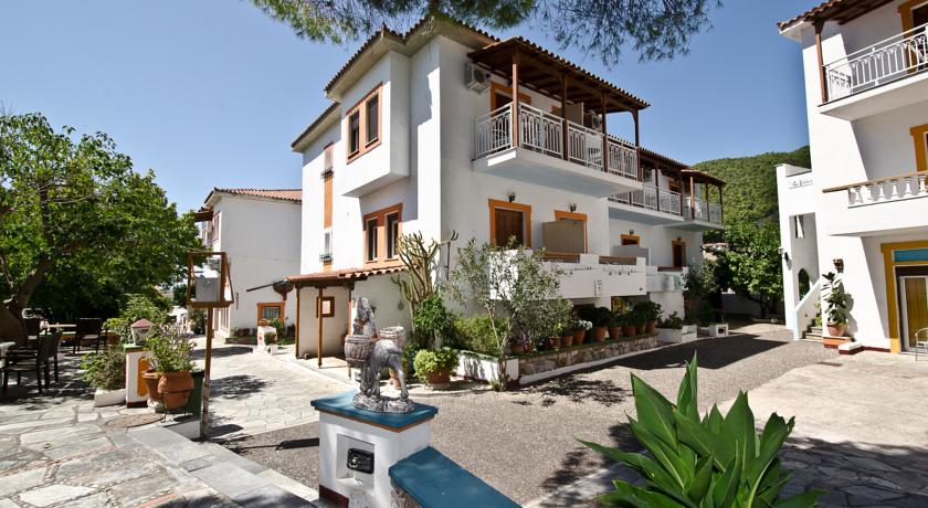 L'Elios Holidays Hotel dista pochi metri da una fermata dell'autobus, 7 km dal villaggio di Glossa e 19 km dal villaggio di Chora, con il Porto di Skopelos (Scopelo in italiano).