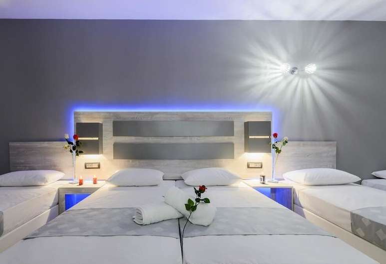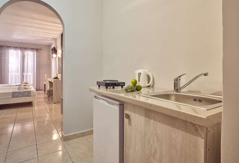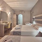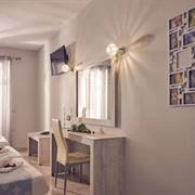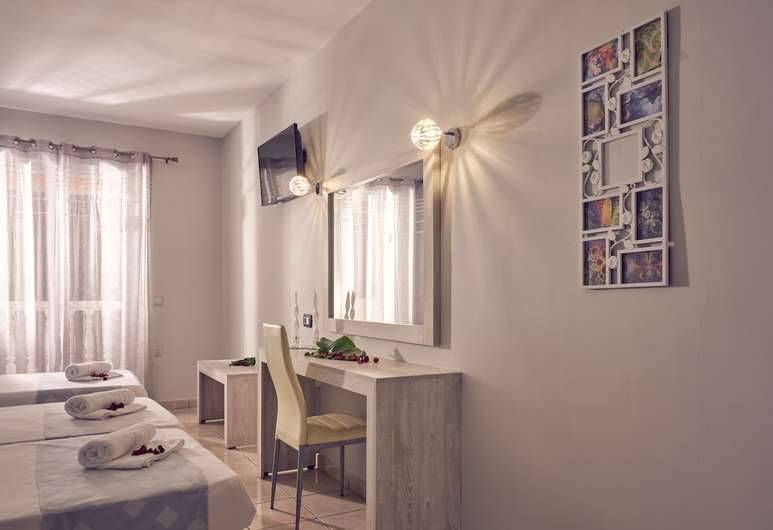 Provviste in alcuni casi di balcone, le sistemazioni dell'Hotel Aeon sono dotate di TV a schermo piatto, bollitore e bagno con cabina doccia in vetro.