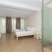 I monolocali dell'hotel Belussi Beach sono muniti di aria condizionata, TV, frigorifero, zona pranzo e bagno privato con doccia.