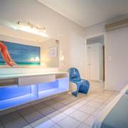 Le spaziose camere presentano un arredamento minimalista con carta da parati a tema. I bagni sono dotati di vasca o doccia.