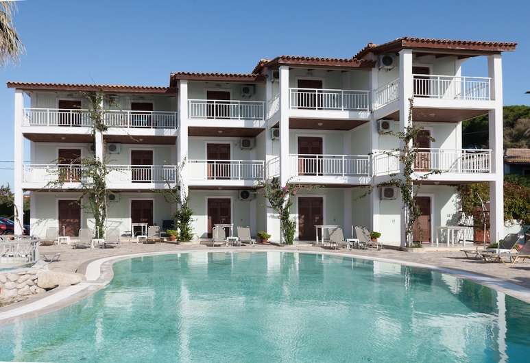 Situato a 100 m dalla spiaggia di Agios Sostis, il Korfiati Apartments offre una piscina stagionale all'aperto, un bar e sistemazioni climatizzate con balcone e WiFi gratuito.