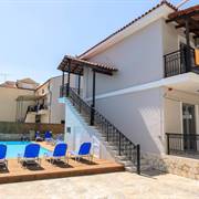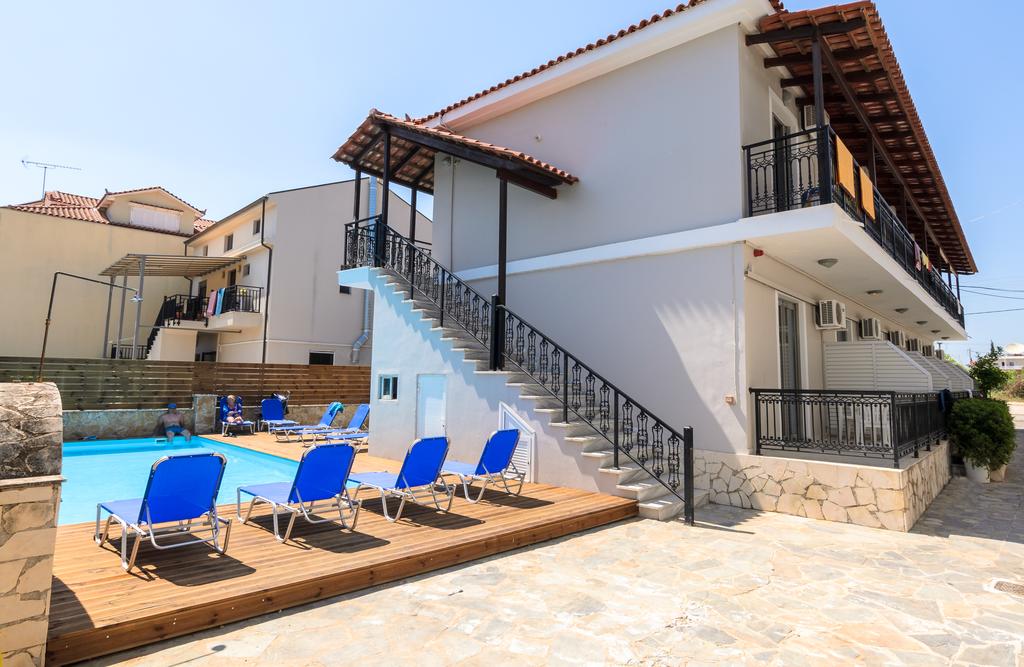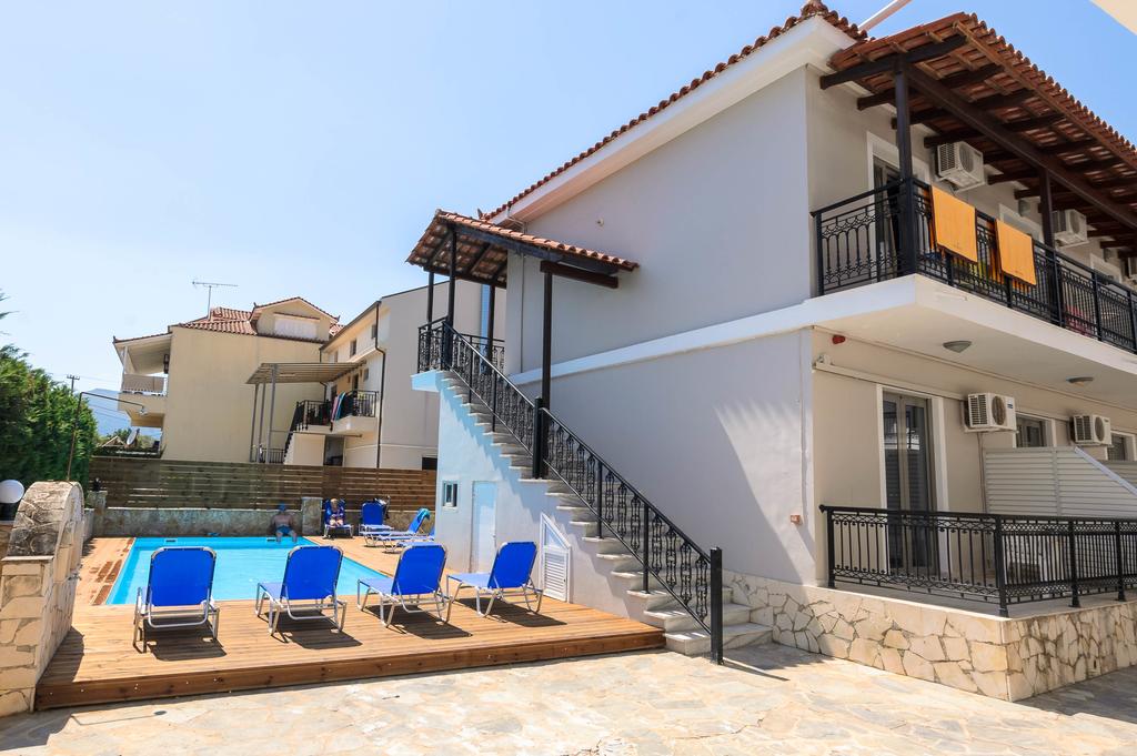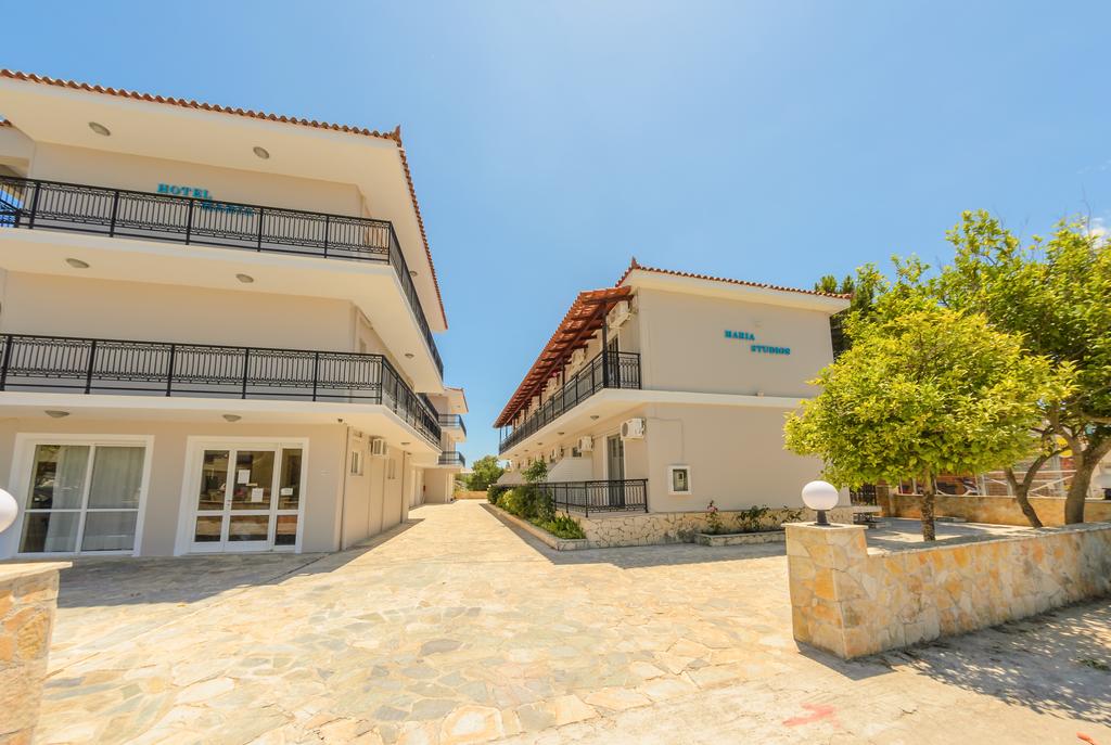 I Maria Apartments si trovano in una zona tranquilla e molto verde a soli 5 minuti a piedi dalla lunga spiaggia sabbiosa di Laganas. La città di Zante si trova a 6 km di distanza e l'aeroporto dell'isola dista 3 km. Il centro di Laganas è a soli 500 metri di distanza in modo tale che qualsiasi ristorante, bar, negozio, il servizio si possa raggiungere a piedi. Inoltre, la spiaggia più vicina dista solo 200 metri. Maria Apartments è la dependance di Karras Hotel situato a circa 80-100 metri dagli appartamenti.