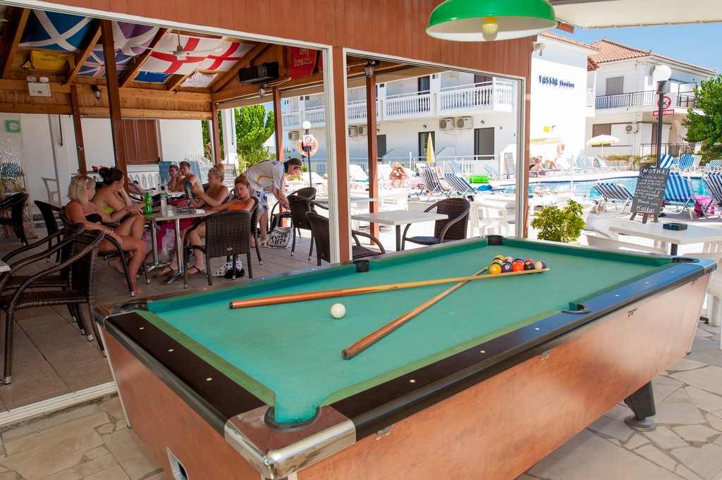 Nella sala da pranzo gusterete una colazione all'inglese, e lo snack bar vi propone caffè, spuntini leggeri e cocktail. Come ospiti della struttura potrete usufruire di una TV satellitare nel bar e di vari tavoli da biliardo e da ping pong, mentre a bordo piscina vi attendono serate organizzate in stile greco, con musica e ballo.