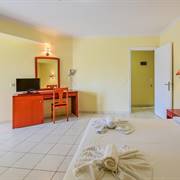 Le camere sono dotate di scrivania, TV a schermo piatto e bagno privato. Alcune sistemazioni del Timos Hotel regalano viste sul mare.