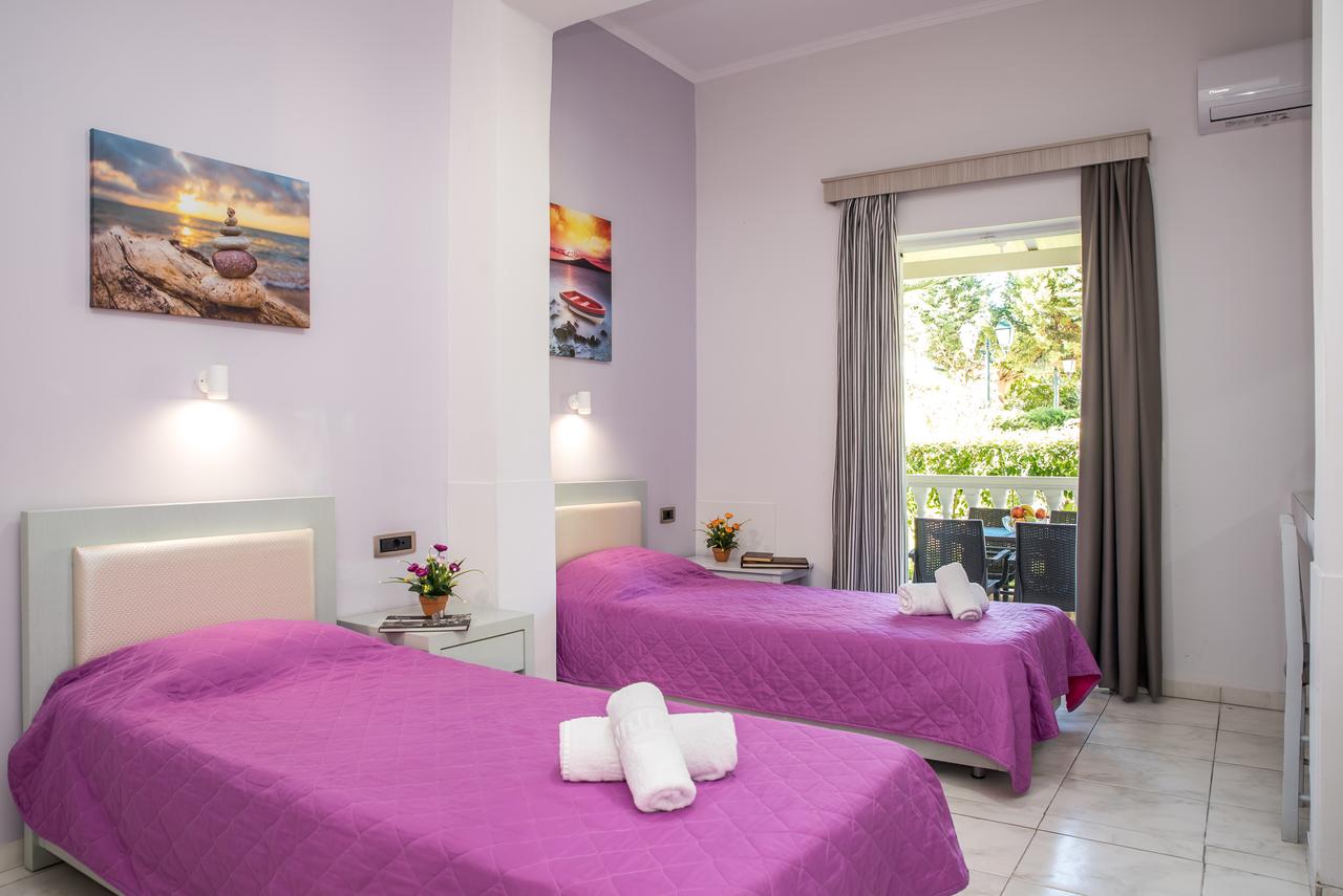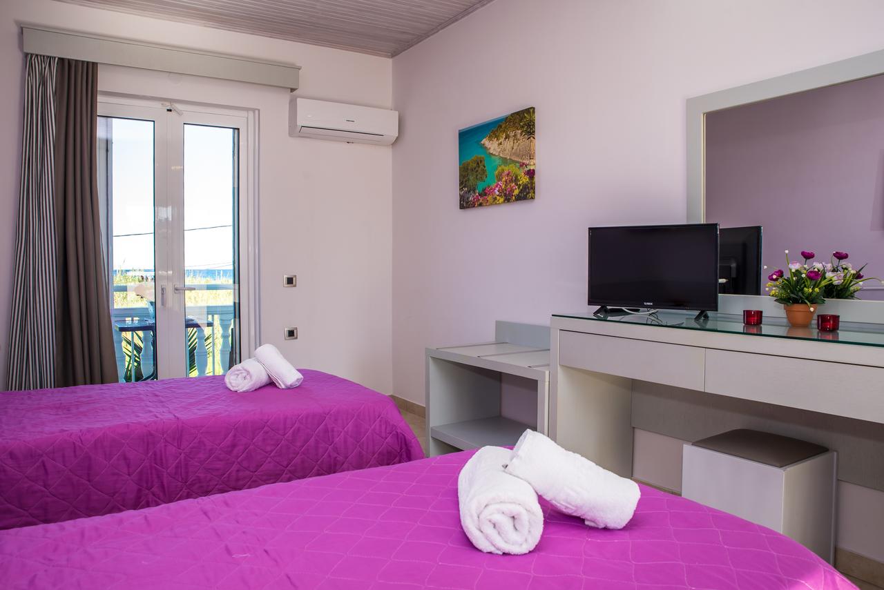 La struttura sorge ad appena 100 metri dal centro della località, a 5 km dalla città di Zante e a 8 km dall'aeroporto.